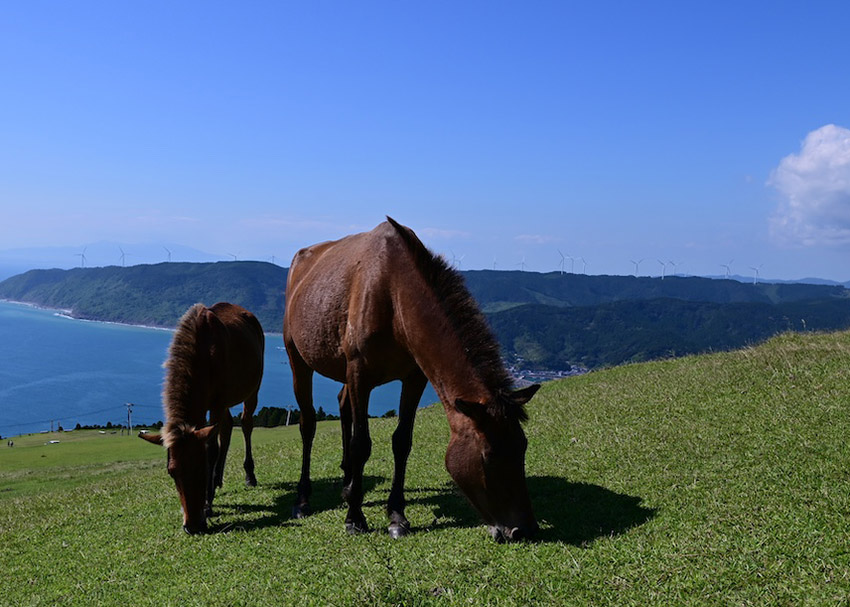 宮崎県の最南端の都井岬一帯に生息する野生馬。この馬は江戸時代に高鍋藩が放牧したのが始まりで、国の天然記念物に指定。自然の中でたくましく生きる姿を近くで観察できます。4月から5月にかけては春駒と呼ばれる子馬が多く生まれ、タイミングが良ければ可愛い姿を見ることができます。