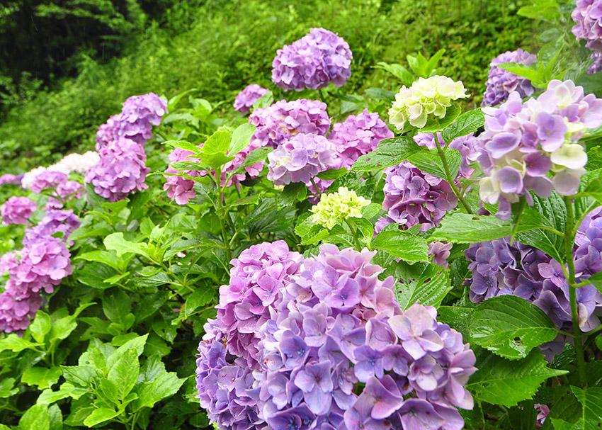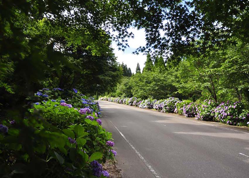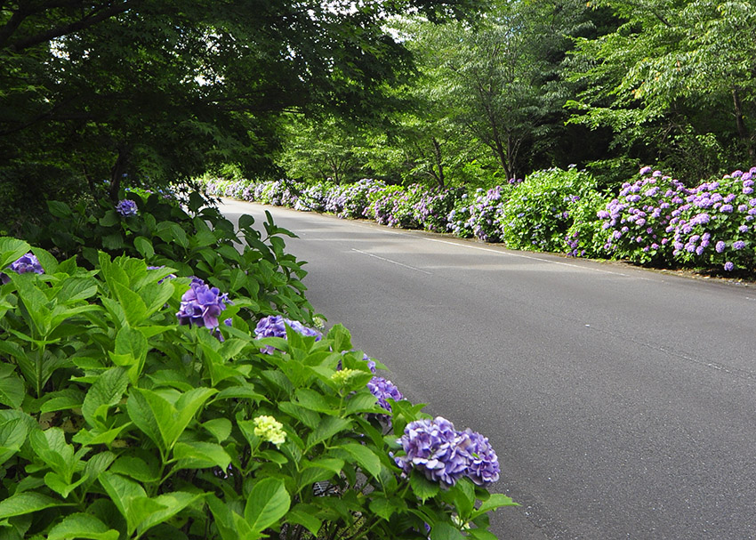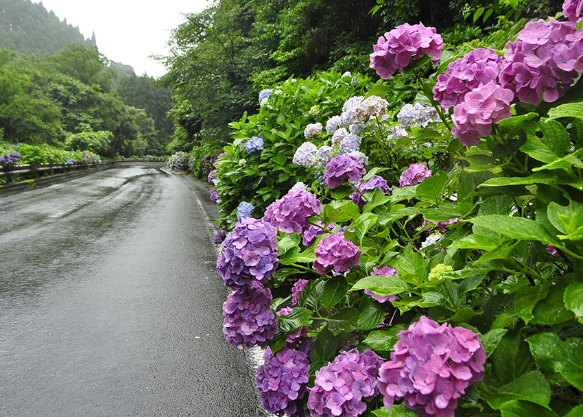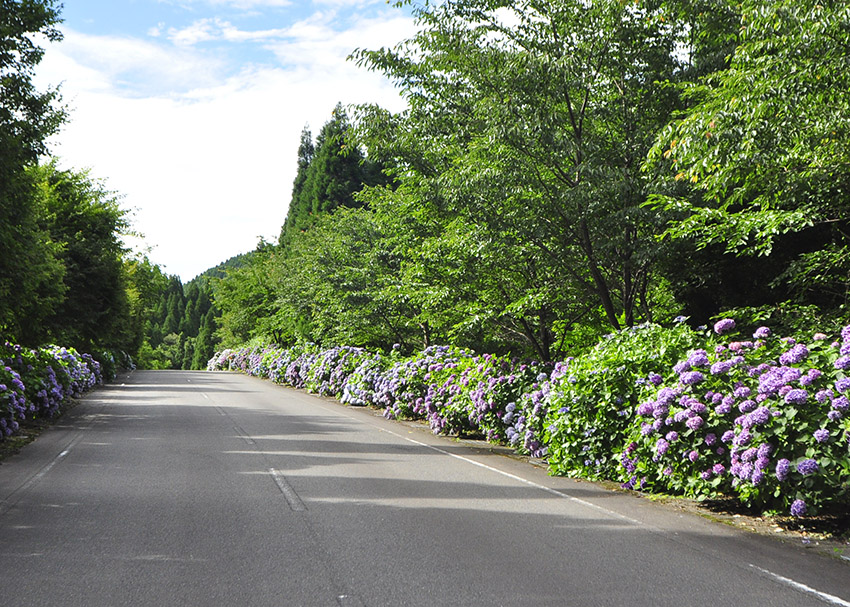 沿道に多くの色とりどりのアジサイが見れる串間屈指のアジサイロードです。