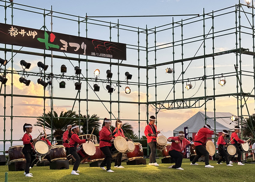 8月末にはこの地域に伝わる大蛇伝説にちなんだ「都井岬火まつり」が行われます。高さ約30mの柱を立て、その頂上めがけて下から松明を投げ入れる勇壮な祭りで、毎年多くの人が訪れる串間の夏の風物詩となっています。