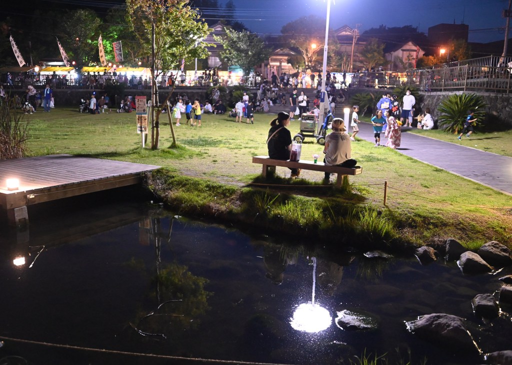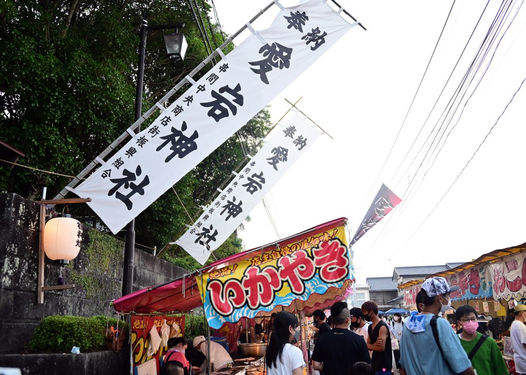 毎年7月23日に行われる愛宕神社のお祭りの賑わいです。人口15000人弱の小さな街ですがこの日だけは商店街の中に多くの人出で賑わいを見せます。愛宕神社のある場所が国指定重要文化財の旧吉松家住宅の敷地内にあるという珍しい神社です。数年前には愛宕神社と重要文化財の施設の周辺を一体的に開発した市民広場が完成して串間の中心的な場として市民に親しまれています。