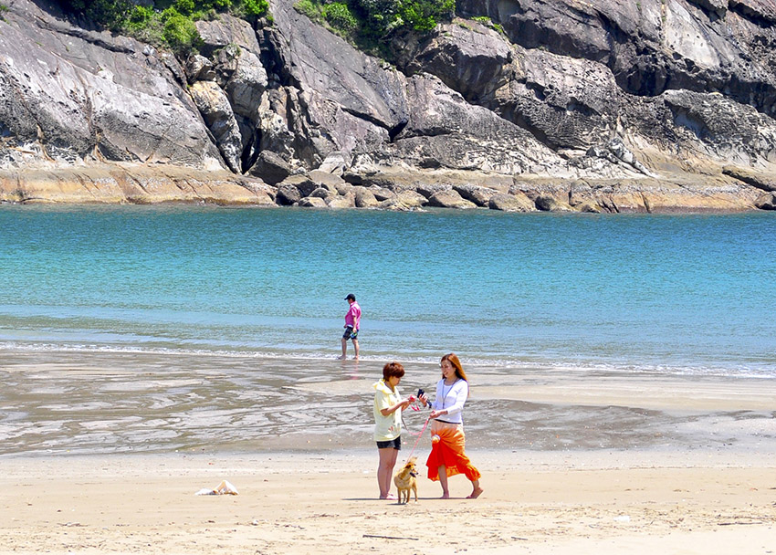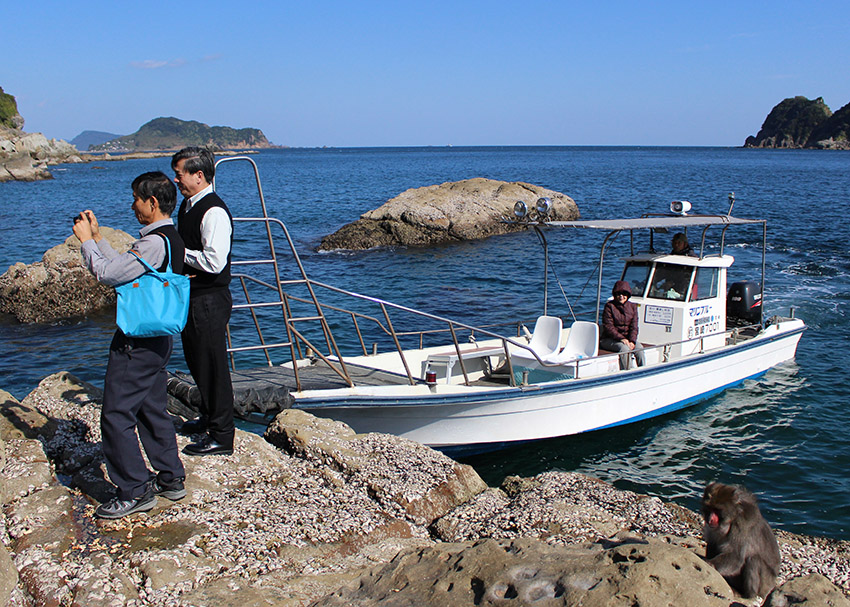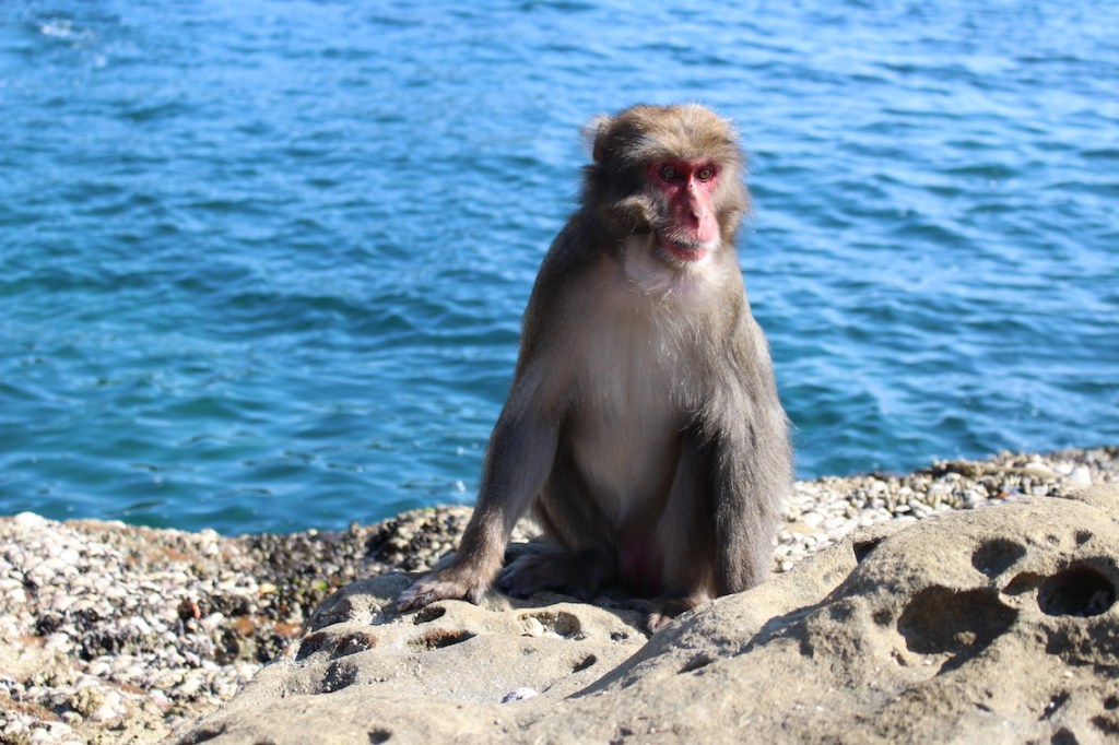 猿の生息地として国の天然記念物に指定されている幸島です。芋を洗って食べる約90匹のニホンザルが生息する無人島です。引き潮になると歩いて渡れたことも。