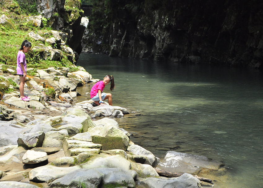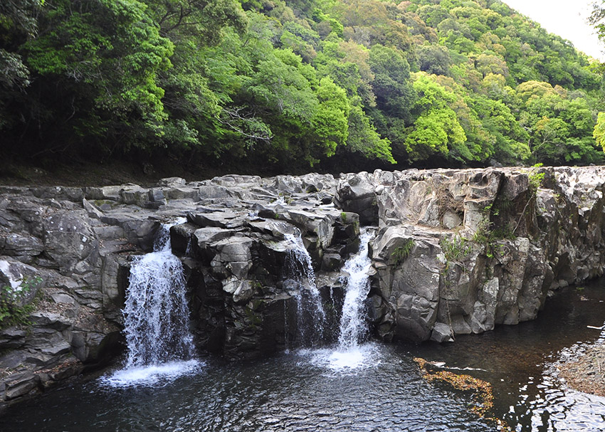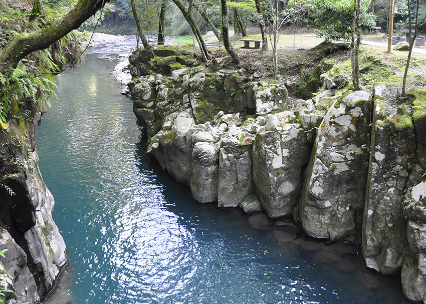 約2万5000年前におきた、姶良大噴火で発生した入戸(いと)火砕流により姶良溶結凝灰岩が川の浸食などによって、滝や甌穴(おうけつ)、柱状節理(ちゅうじょうせつり)の川壁ができました。