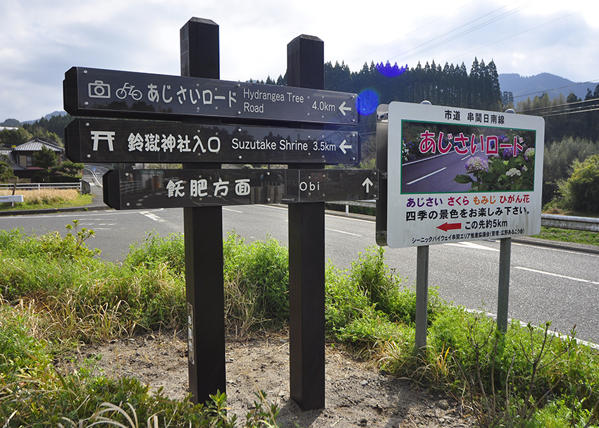 大束地区の大平集落へ向かうと『あじさいロード』の看板が出てきます。