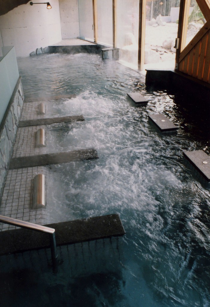 鹿児島県志布志市有明町に1995年に温浴施設として完成。地元杉材の製材を使った木造建築として設計。緩やかな勾配の土地という条件をスロープと階段を上手く配置することで子供から高齢者に優しい計画とした。平成7年に通商産業省選定のグッドデザイン賞受賞しました。